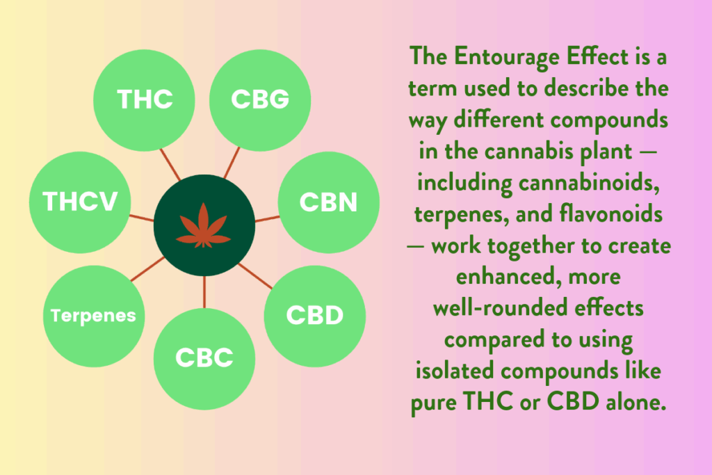The benefit of enjoying full spectrum cannabis is called the “entourage effect.” This theory suggests that all the compounds in cannabis work in harmony to enhance each other’s effects-in other word: the result is greater than the sum of its parts.